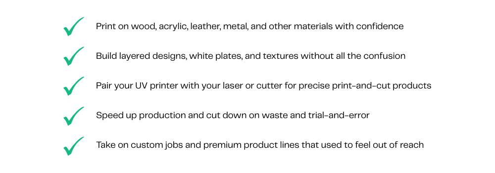 Remember, part of learning UV printing is experimenting and problem-solving, but you’ll never be left completely in the dark.